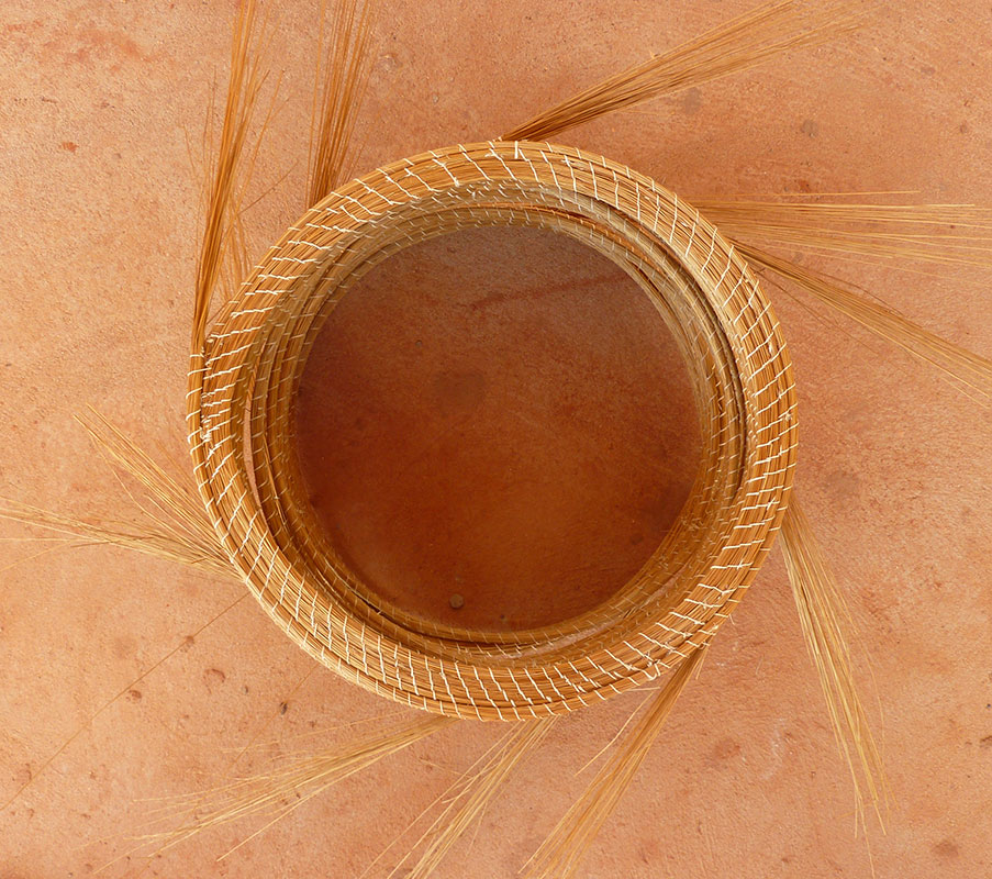 Leni, Sylvana, Maria, Soco, Claudiana… natives of Jalapao region sew these golden strands with a buruti palm tree thread. They divide the buruti bark in thin strips and tie or sew small bundles of Capim Dourado to obtain the lampshades of this collection.